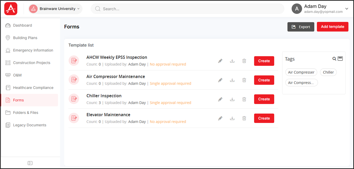 - Move to the Forms screen and then click on a specific template to view all the form(s) created using that template.