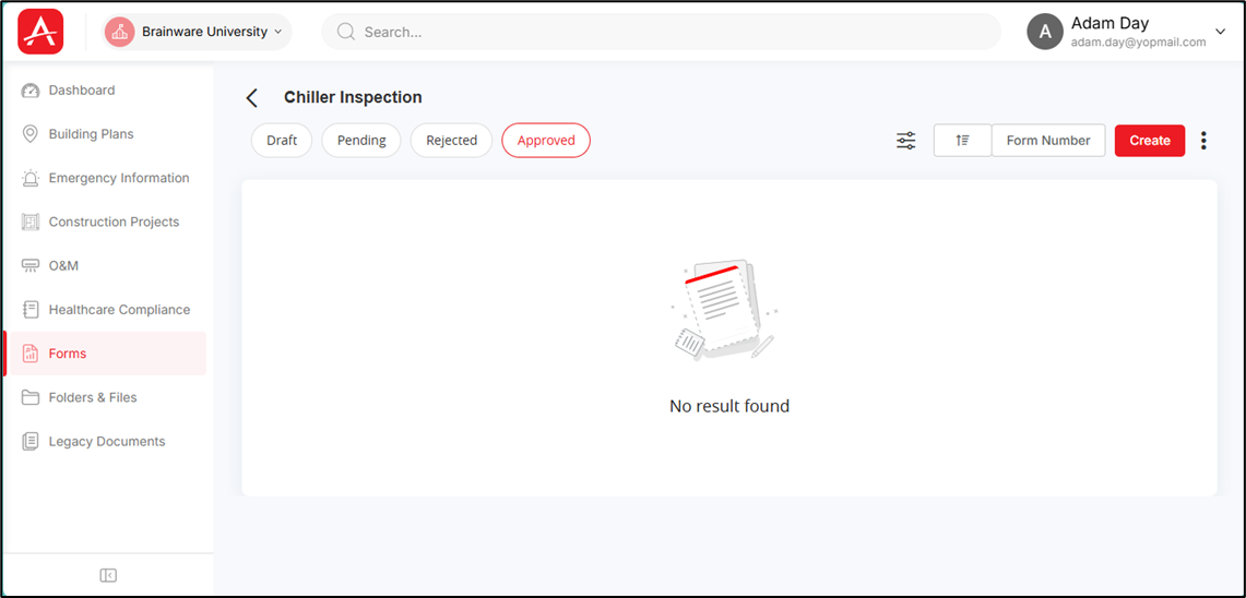 Again, if you click the [Approved] tab, then all the forms (under this template) with the status as ‘Approved’ are displayed.