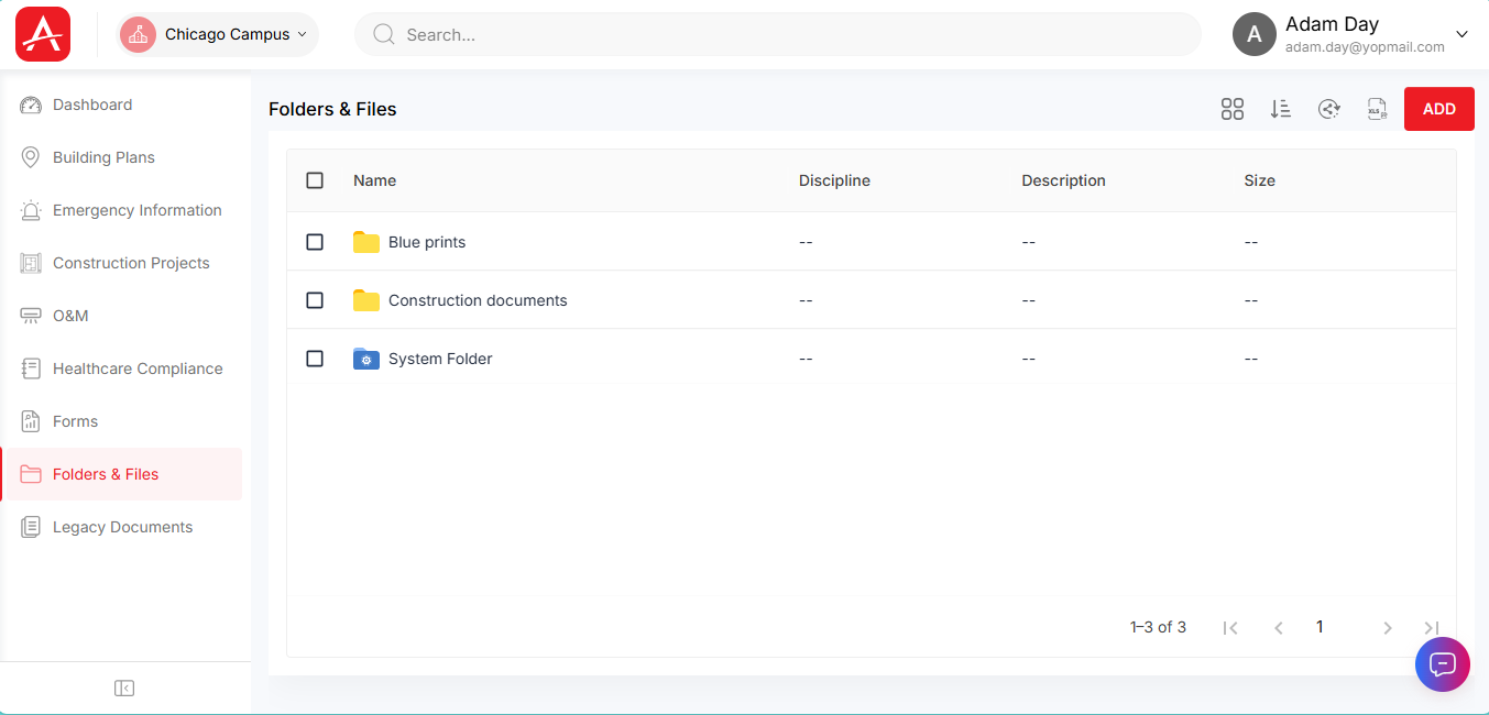This module contains all the floor plans & files uploaded into your campus. This module will mainly consist of floor maps of each building, any linked files of equipment/shut-off/custom module, any compliance documents etc.